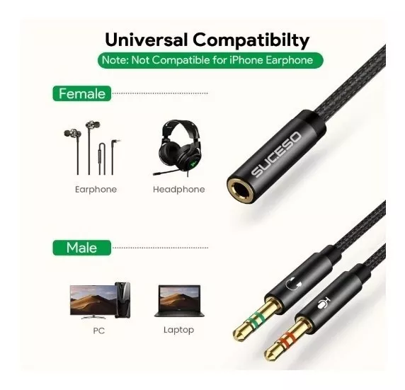 • Conexión Versátil: Este adaptador de audio jack de UGREEN te permite conectar micrófonos y auriculares a dispositivos con diferentes tipos de conectores de audio. Convierte un conector de 3.5 mm en dos conectores separados para micrófono y auriculares, brindándote flexibilidad en tus dispositivos compatibles.